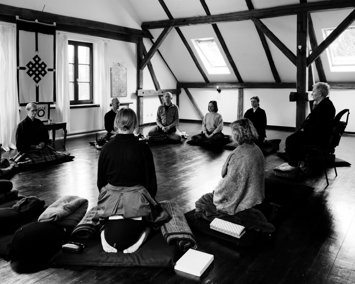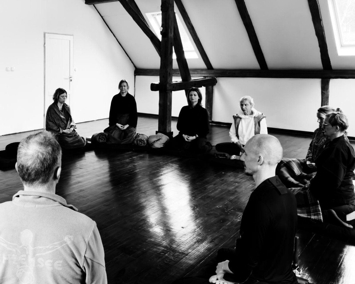 Ostatni weekend okazał się był kolejną niezwykłą okazją, by wspólnie poszukiwać tego stanu spokoju. W malowniczych okolicznościach przyrody Gądkowa Wielkiego, z dala od miejskiego zgiełku, mieliśmy szansę praktykować weekendową medytację w nowym, wyjazdowym formacie. Te dwa dni to podróż w głąb siebie, pełna inspirujących wrażeń i przepływu wzajemnej energii. Każdy moment, od długich sesji medytacyjnych na poduszce, piękne spacery po lesie, przez ciche chwile relaksu przy herbacie matcha, aż po intensywne rozmowy w saunie i nocnej kąpieli w przeręblu, przypominał mi, jak ważne jest bycie tu i teraz. Rozmowy o praktyce, dzielenie się doświadczeniami i wzajemne wsparcie tworzyły atmosferę, w której każdy mógł poczuć się częścią większej całości – wspólnoty poszukiwaczy prawdy i wewnętrznej harmonii.
