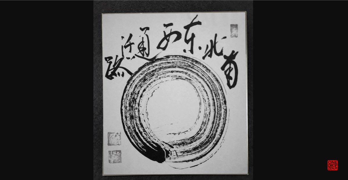 Enso namalowane przez Mistrza Zen Shodo Haradę, umieszczone na symbolicznym ołtarzu z inskrypcją: "Północ Południe Wschód Zachód całkowicie wolne"