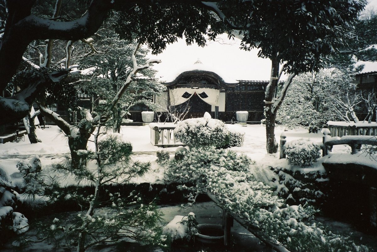 Zima 2001 r. w świątyni zen Bukkoku-ji.Życie zen blisko natury oznacza też, że w zimie, jest… zimno, ponieważ budynki nie są ogrzewane, a cienkie ściany nie są w żaden sposób ocieplone.