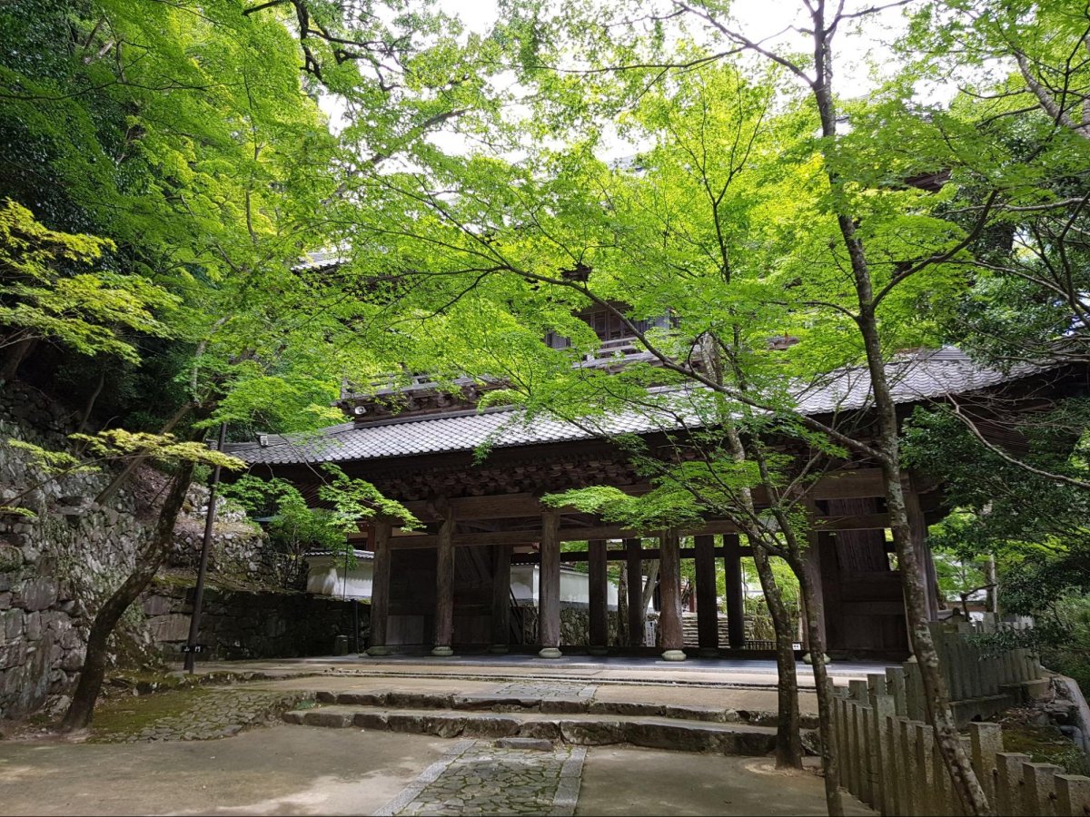 Klasztory zen często położone są w miejscach o wyjątkowych walorach przyrodniczych.Przykładowo klasztor Eigen-ji mieści się na górze przy rzece Echigawa.Na zdjęciu z 2019 r. widoczna jest brama główna, która została oznaczona jako cenne dobro kulturalne prefektury Shiga.Okoliczne klony japońskie przyciągają jesienią tysiące odwiedzających, przybywających podziwiać malownicze widoki.