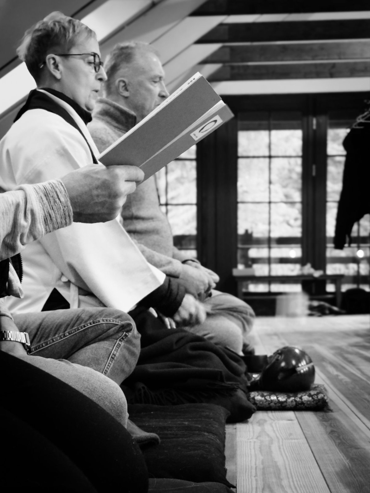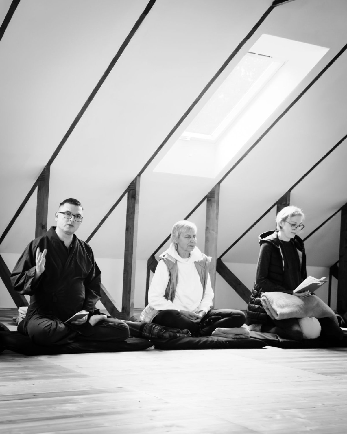 Było inaczej ponieważ formuła naszych spotkań została uproszczona do takiej formy aby nikogo kto znalazł się w naszej grupie nią nie zniechęcić. Były wspólne recytacje sutr w okrojonej formie, medytacja, nawet sporo siedzenia na poduszce, wykład, wszystko to podzielone chwilami wytchnienia. Była również wspólna praca podczas której mogliśmy lepiej się poznać, ceremonia parzenia herbaty matchy w czasie której mogliśmy wymieniać się doświadczeniem jakie zdobywamy na poduszce. Ten wspólny czas, wspólne przeżywanie miejsca, jego energii, czerpanie z mądrości jaka płynie ze wspólnej praktyki i możliwość dzielenia się swoimi odczuciami, doznaniami jakie towarzyszą nam podczas medytacji zbliżały nas do siebie.