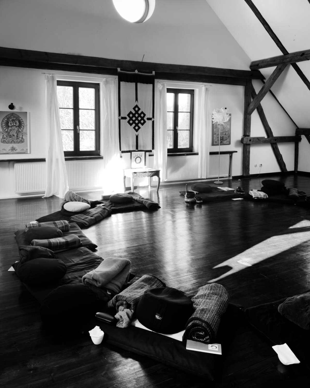 Ostatni weekend okazał się był kolejną niezwykłą okazją, by wspólnie poszukiwać tego stanu spokoju. W malowniczych okolicznościach przyrody Gądkowa Wielkiego, z dala od miejskiego zgiełku, mieliśmy szansę praktykować weekendową medytację w nowym, wyjazdowym formacie. Te dwa dni to podróż w głąb siebie, pełna inspirujących wrażeń i przepływu wzajemnej energii. Każdy moment, od długich sesji medytacyjnych na poduszce, piękne spacery po lesie, przez ciche chwile relaksu przy herbacie matcha, aż po intensywne rozmowy w saunie i nocnej kąpieli w przeręblu, przypominał mi, jak ważne jest bycie tu i teraz. Rozmowy o praktyce, dzielenie się doświadczeniami i wzajemne wsparcie tworzyły atmosferę, w której każdy mógł poczuć się częścią większej całości – wspólnoty poszukiwaczy prawdy i wewnętrznej harmonii.